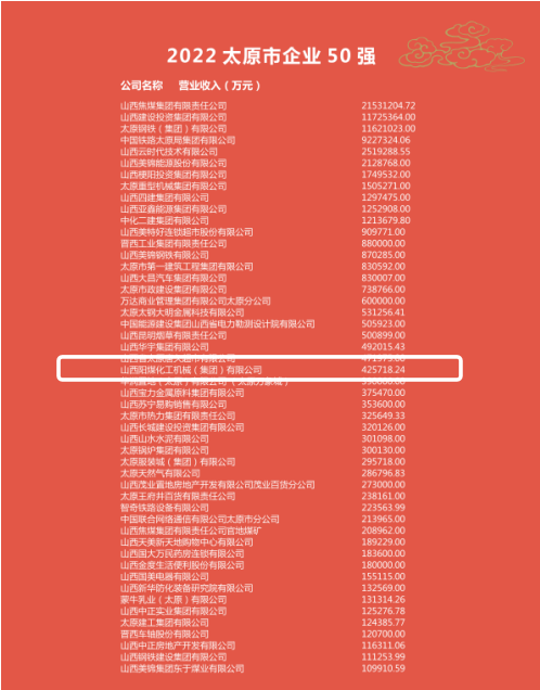 化機(jī)集團(tuán)榮獲“2022太原市企業(yè)50強(qiáng)”、“2022太原市制造業(yè)企業(yè)50強(qiáng)” 山西陽(yáng)煤化工機(jī)械集團(tuán)有限公司 04-26